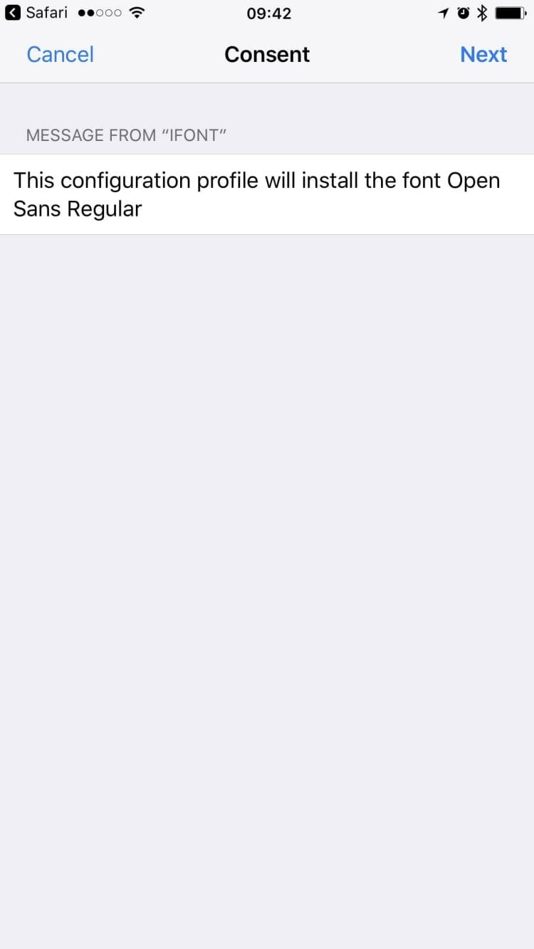 Once the required fonts have been copied to iFont, the installation steps are relatively straightforward. You can select to install one font at a time, or multiple fonts using a single configuration profile. To install a single font on iOS using iFont, follow these steps: